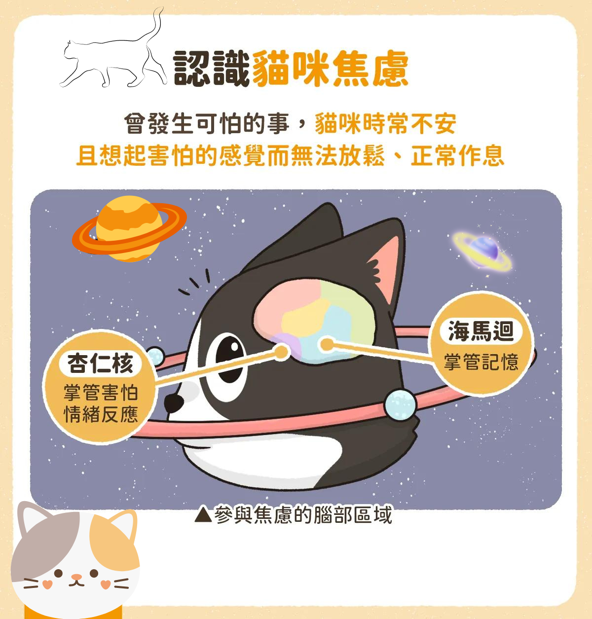 貓咪曾有過害怕的事,進而產⽣不安,不知道接下來什麼時候再次發生,時常想起害怕的感覺,影響正常作息及⾯對喜歡的事物,即便在安全的環境也不會感到放鬆,總是身陷在緊繃的情緒。