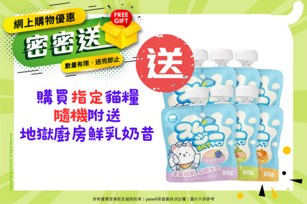 購買指定貓糧隨機送地獄廚房鮮乳奶昔