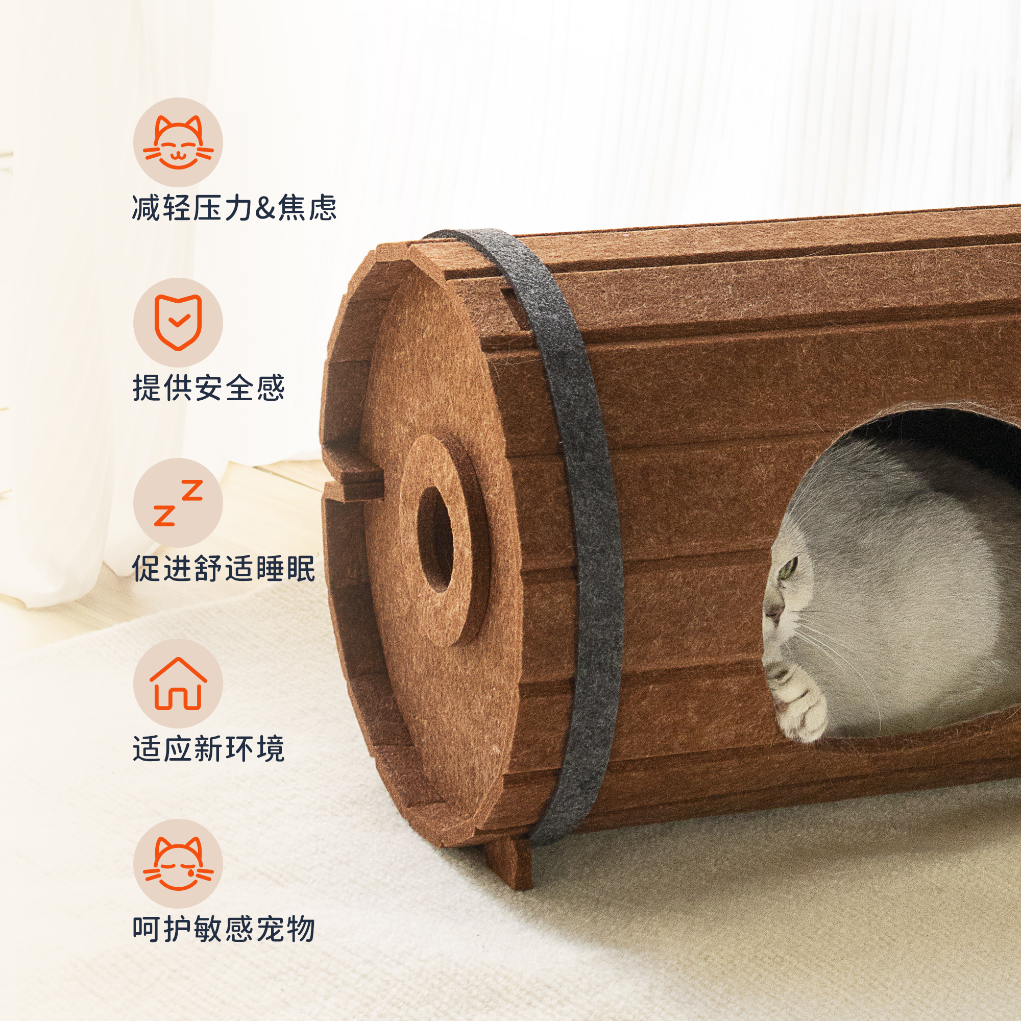 3.全包圍貓窩,弱光環境私密空間,滿足貓咪藏匿天性,給主子充足的安全感