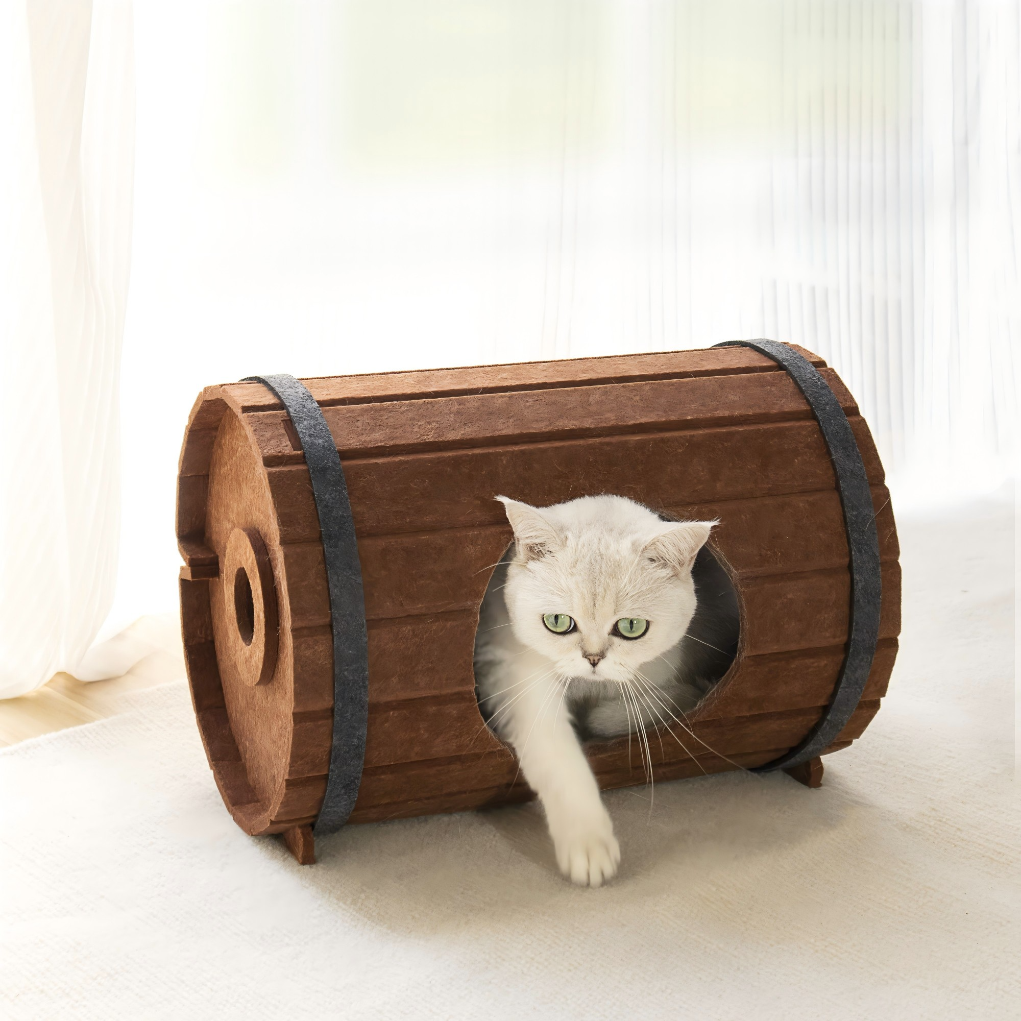 主子優選 舒適環保疊代版組裝酒桶毛氈寵物窩紅咖色 490g