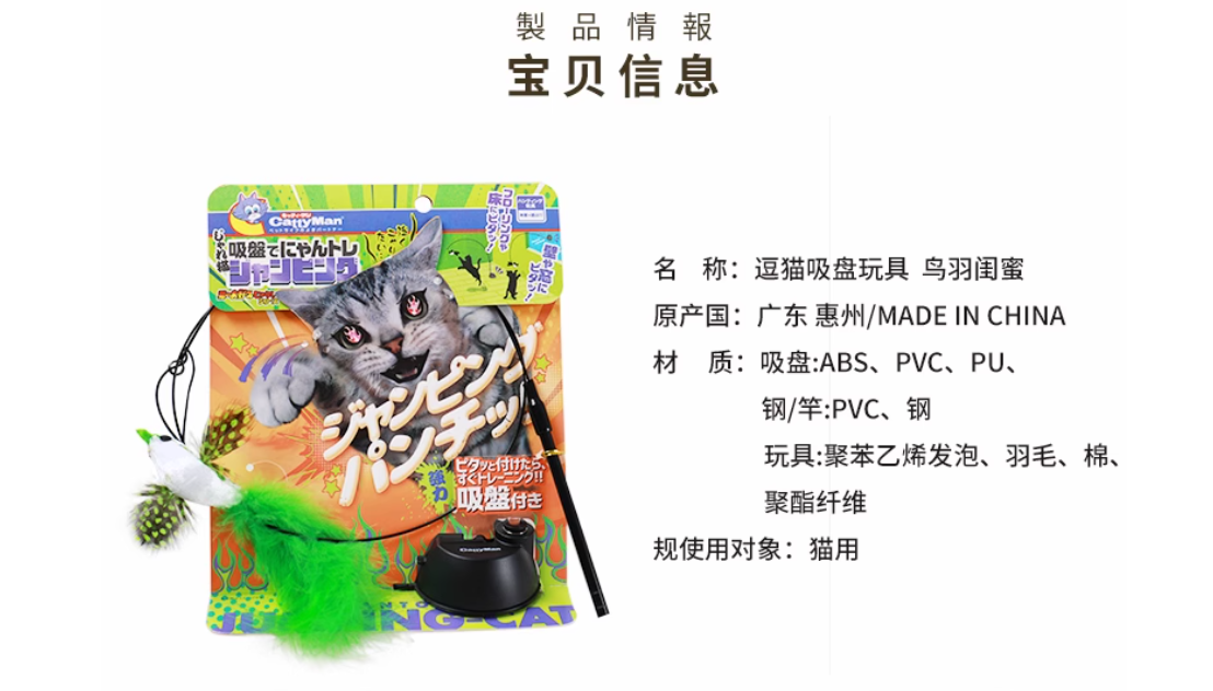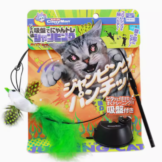 Catty Man 吸盤式逗貓棒 綠色羽毛
