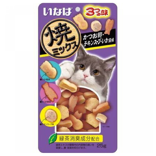 雞胸肉、鰹魚、鰹魚節、鰹魚節提取物、雞肉提取物、魷魚提取物、酵母提取物、維生素E、綠茶提取物、紅麹色素