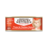 吞拿魚湯、吞拿魚、雞肉、木薯粉、豌豆蛋白質、磷酸三鈣、瓜爾膠、氯化鉀、鹽、硫酸鎂、氯化膽鹼、葡萄糖、牛磺酸、鋅氨基酸螯合物、鐵氨基酸螯合物、生育酚乙酸脂、硫胺素硝酸鹽 (維他命 B1 硝酸鹽 )、錳氨基酸螯合物、煙酸、維他命 A 醋酸酯、銅氨基酸螯合物、碘酸鈣、泛酸鈣、亞硒酸鈉、核黃素補充劑、鹽酸吡哆醇 (維他命 B6)、維他命 B12 補充劑、葉酸 (維他命 B9)、生物素 (維他命 B7)、維生素 D3 補充劑、甲萘醌亞硫酸氫鈉。