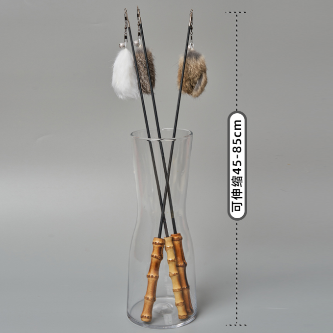 HUAGANGCAT花杠貓 耐用互動竹柄兔皮花朵逗貓棒 混色