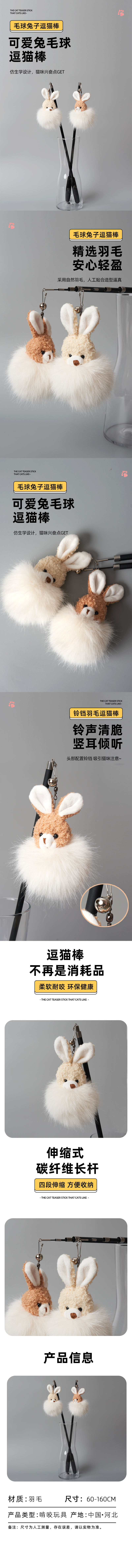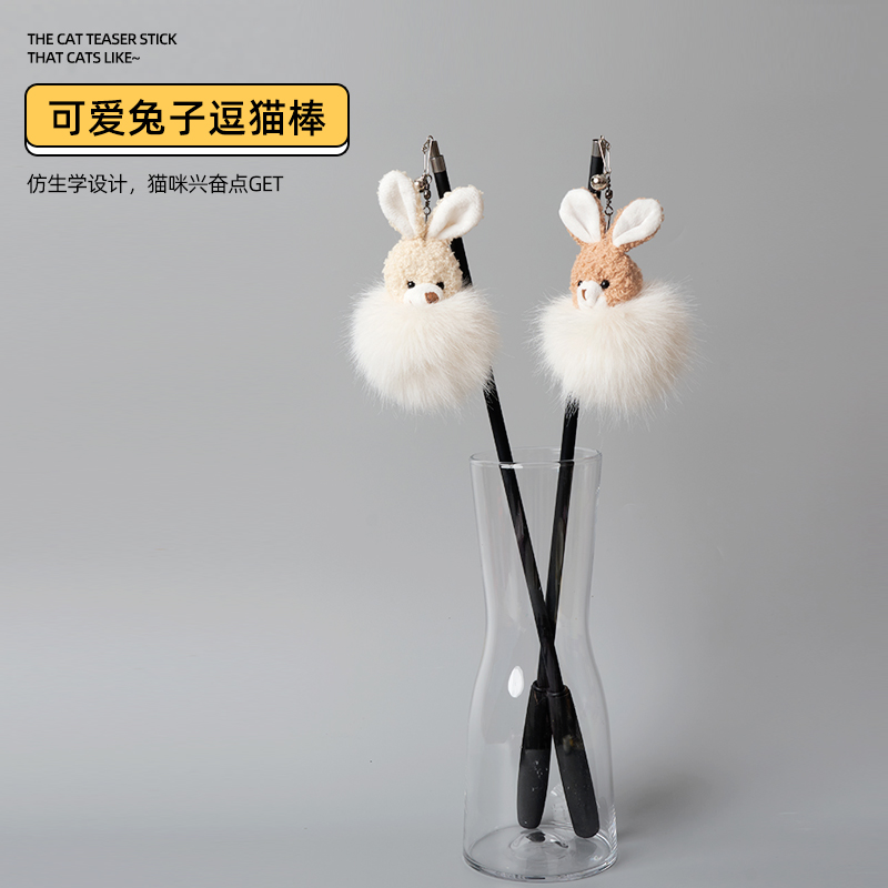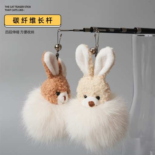 HUAGANGCAT花杠貓 耐用互動兔子玩偶四節逗貓棒 單色