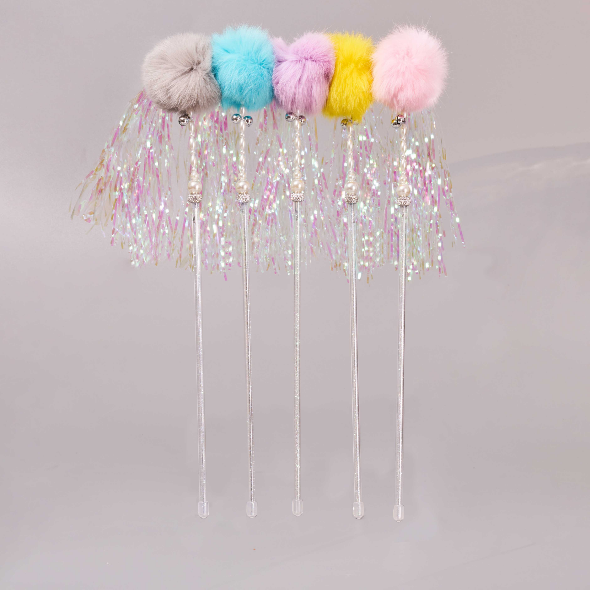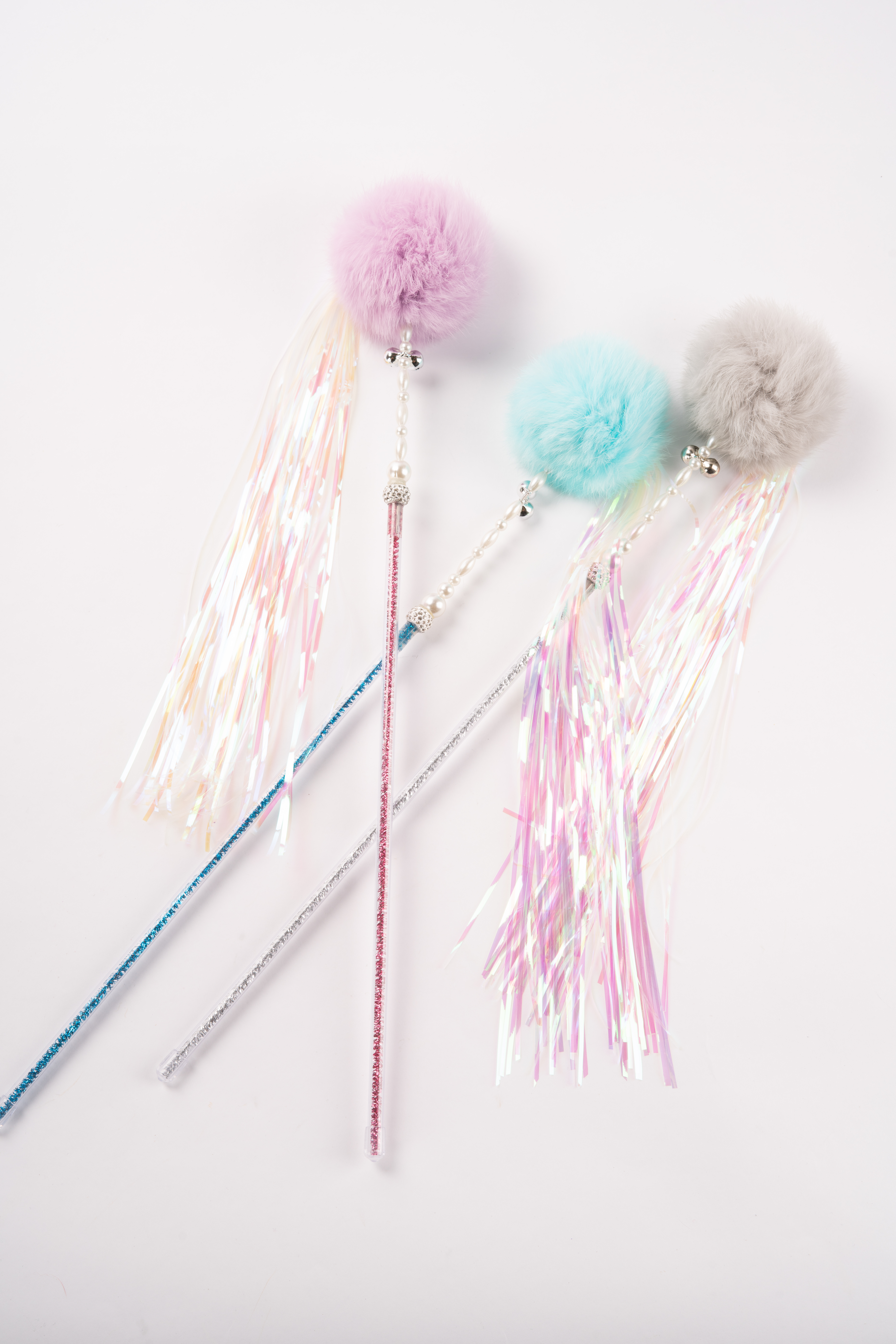 HUAGANGCAT花杠貓 耐用互動兔毛球綵帶逗貓棒 混色