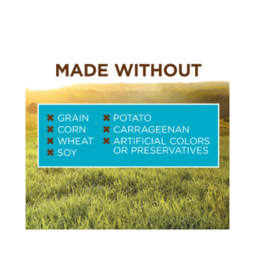 不含穀物、馬鈴薯、玉米、小麥、大豆、副產品粉、人工色素或防腐劑
