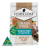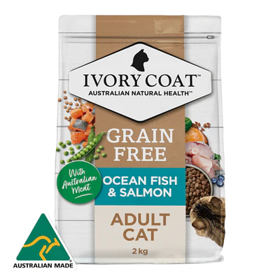 海洋魚類,鮭魚粉,木薯澱粉,豌豆,雞肉脂肪(保留有混合生育酚),亞麻籽,椰子油,豌豆纖維,絲蘭,蘋果,蔓越莓,南瓜,菠菜,維生素A,B1,B2,B5,B6,B12 ,D3,E,K3,菸酸,生物素,葉酸,鐵,碘,鋅,錳,銅,硒,天然益生元,牛磺酸和綠茶提取物