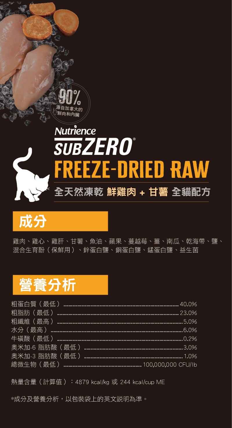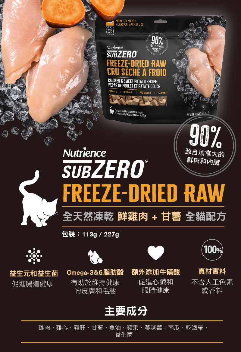 Nutrience 純天然無添加凍乾鮮雞肉甘薯全貓糧 113g