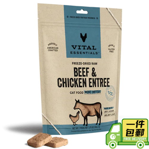 Vital Essentials 牛肉+雞肉主食凍乾迷你餡餅貓糧 3.75oz