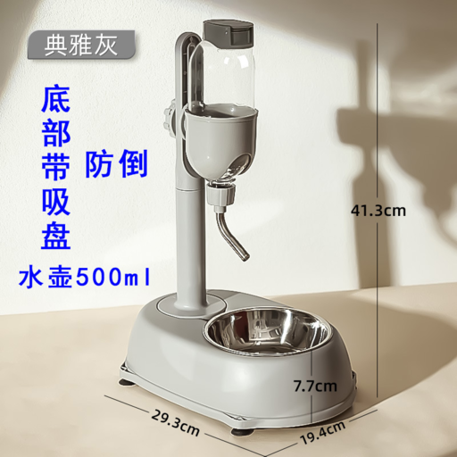 * 防倒耐用懸掛飲水餵食碗 灰色