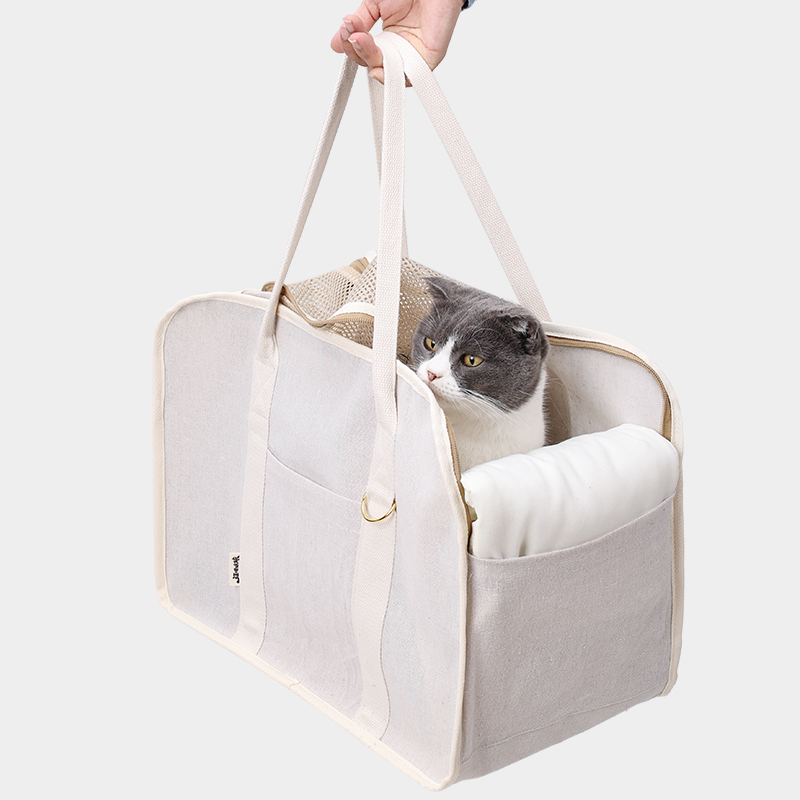 Bone Puppy 汪喵娘娘 便攜透氣月魄棉麻單肩寵物包 米白