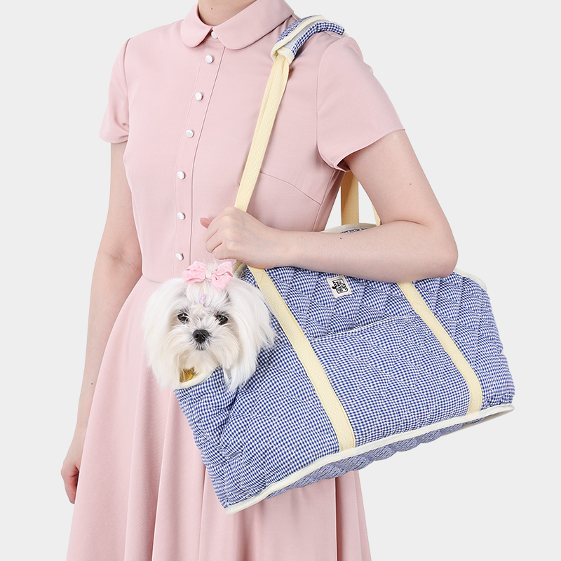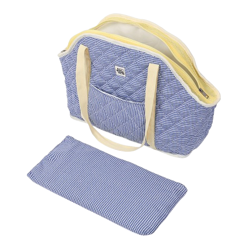 Bone Puppy 汪喵娘娘 便攜透氣海鹽檸檬小藍格子單肩寵物包 藍色