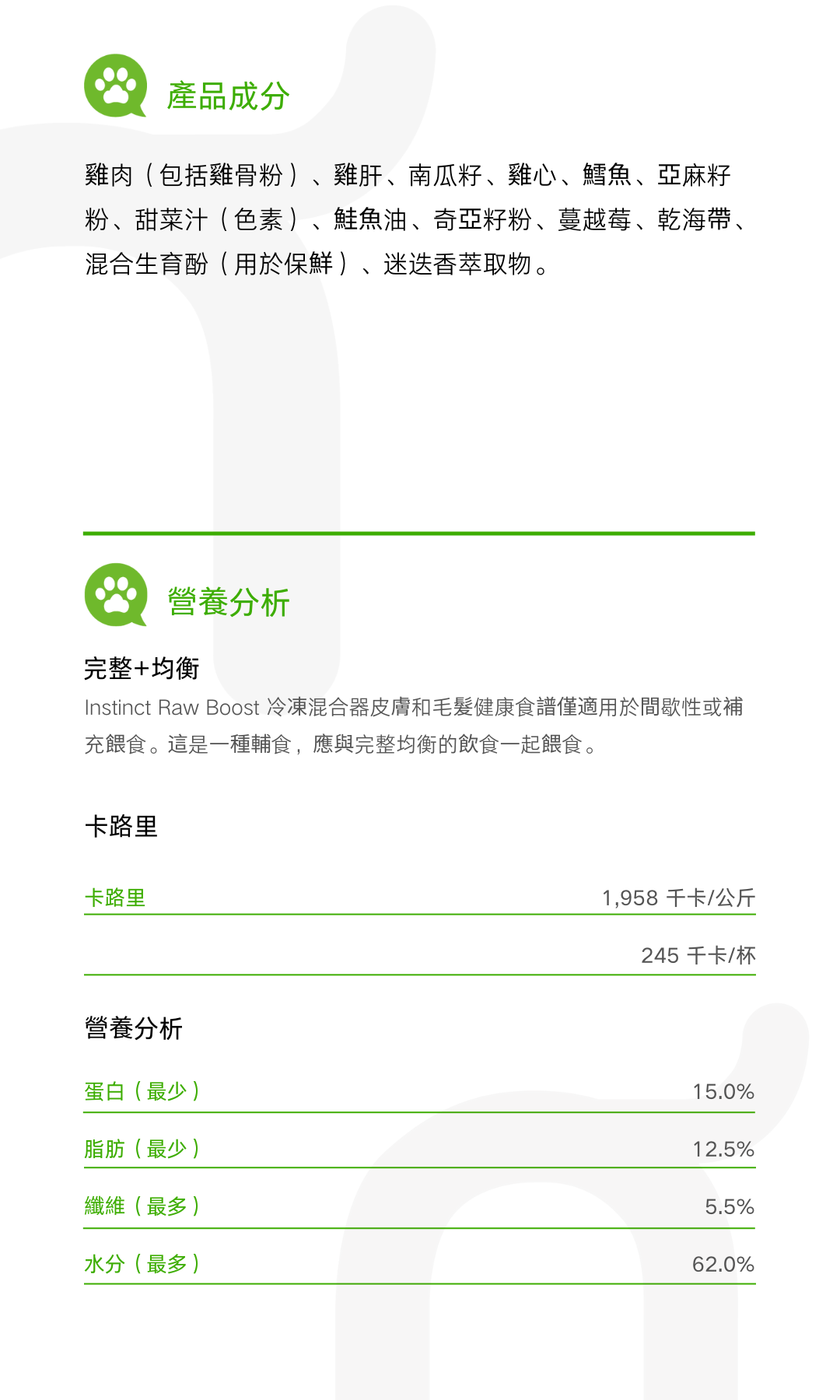 Instinct 本能凍幹雞肉皮膚毛髮健康狗Mixer 5.5oz