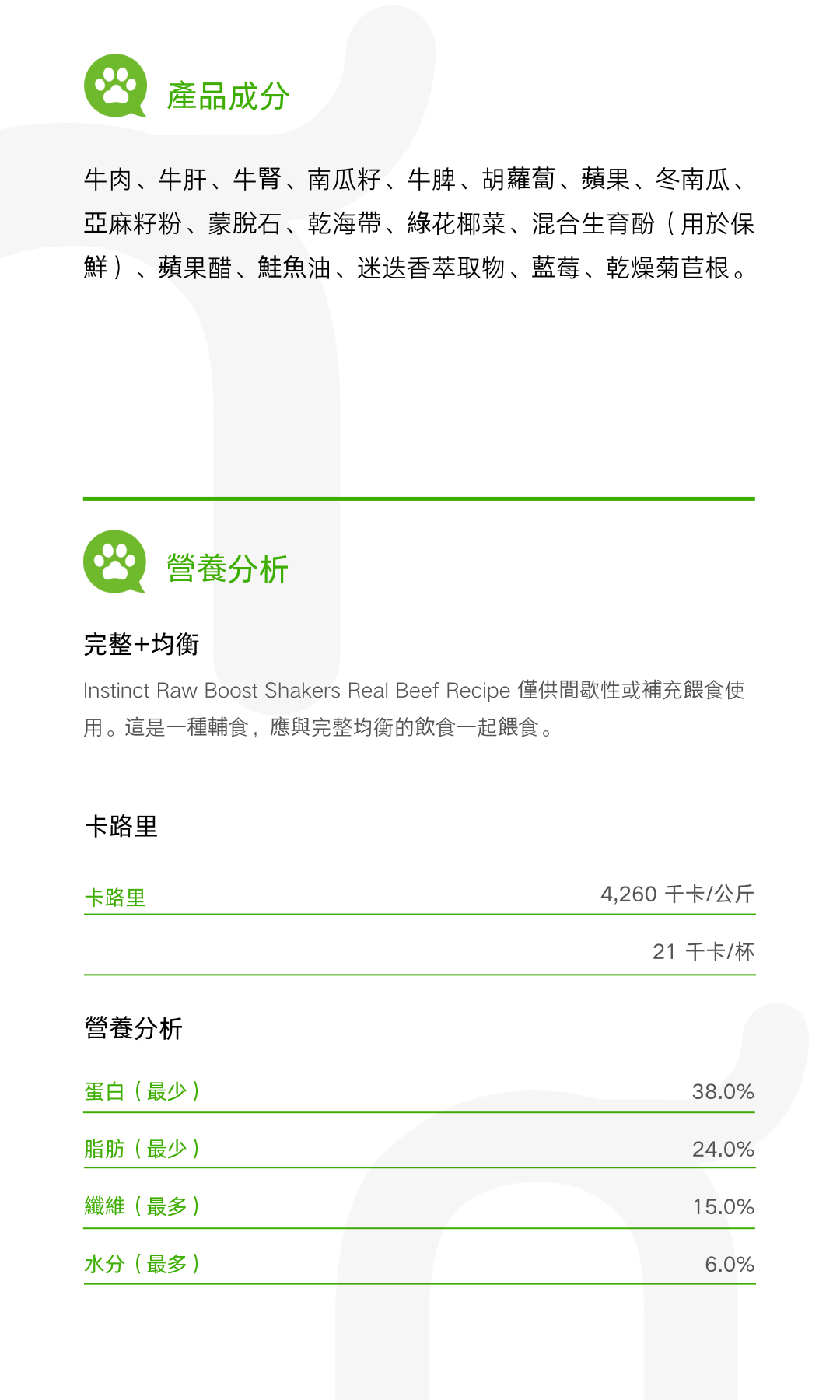 Instinct 生肉shake shake粉 - 牛肉犬用配方 5.5oz (exp.14Feb26)