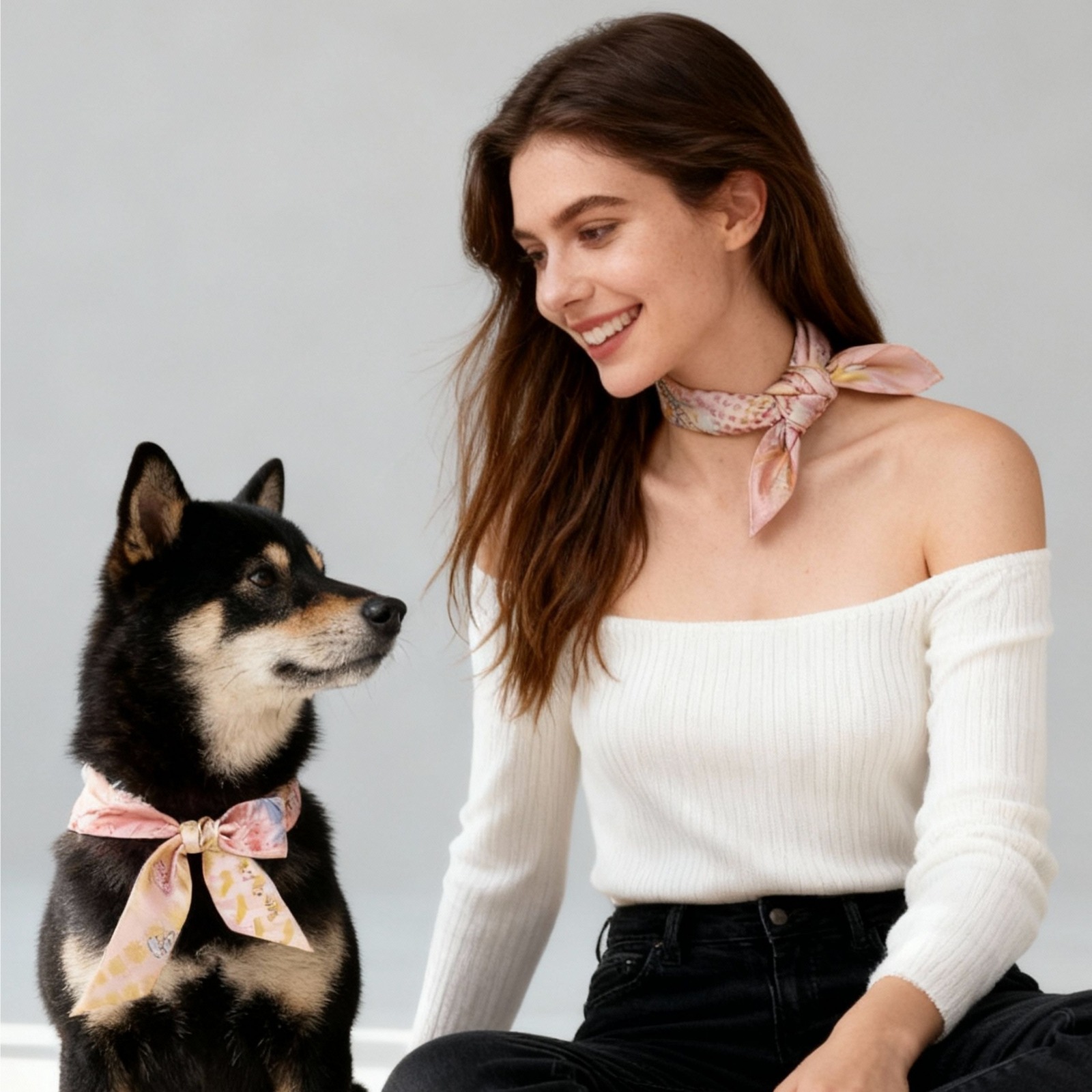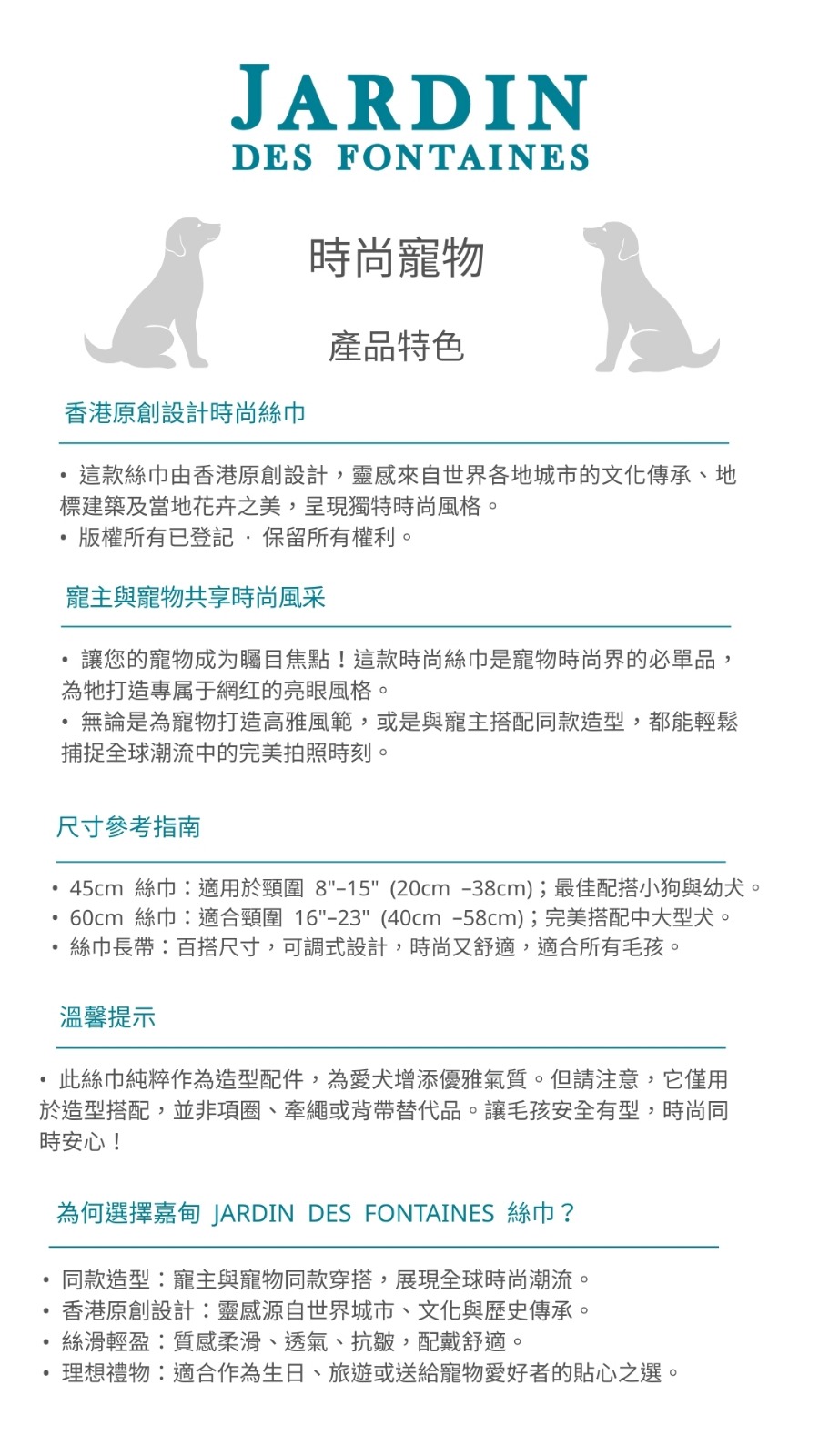 60cm 絲巾:適合頸圍 16"–23" (40cm –58cm);完美搭配中大型犬。