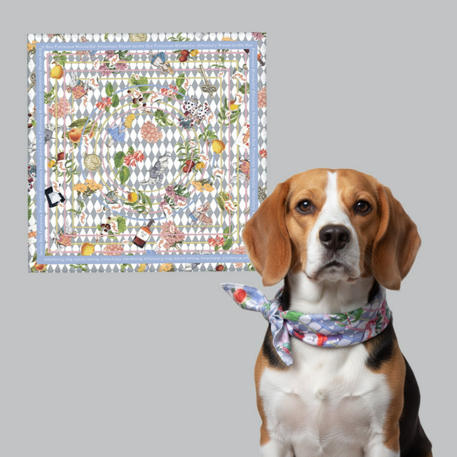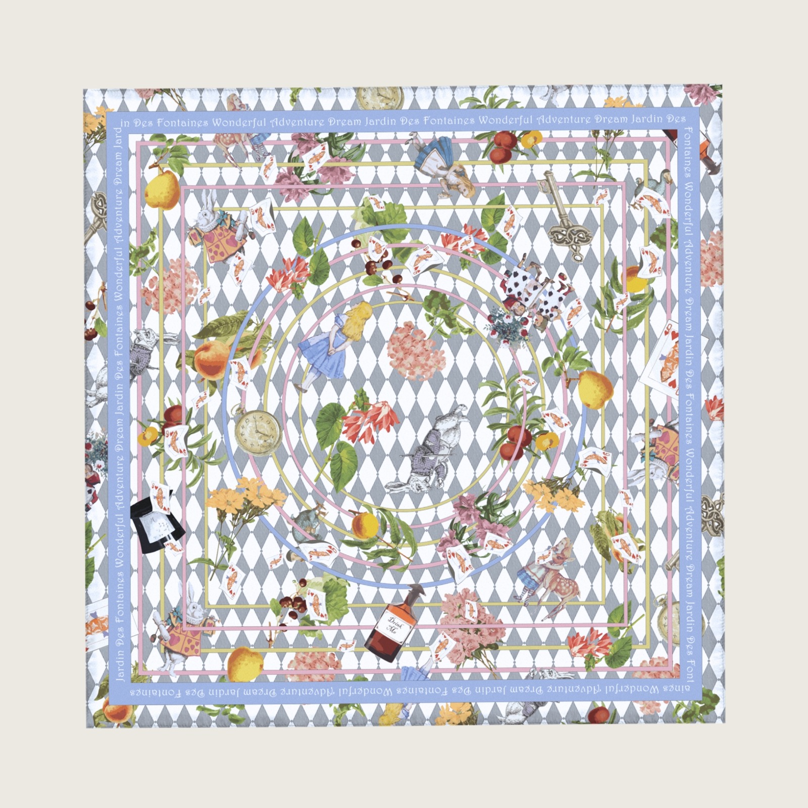 Jardin Des Fontaines 夢幻愛麗絲藍菱格滑絲巾 (45厘米) 一條
