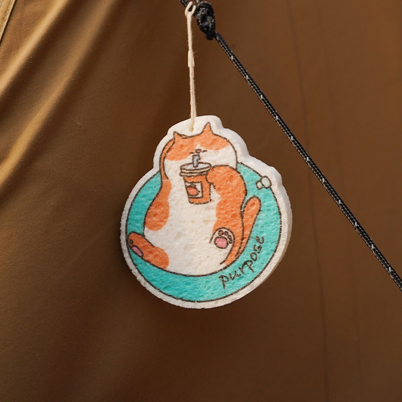 Purpose 原創插畫天然木漿棉洗碗擦 橘貓