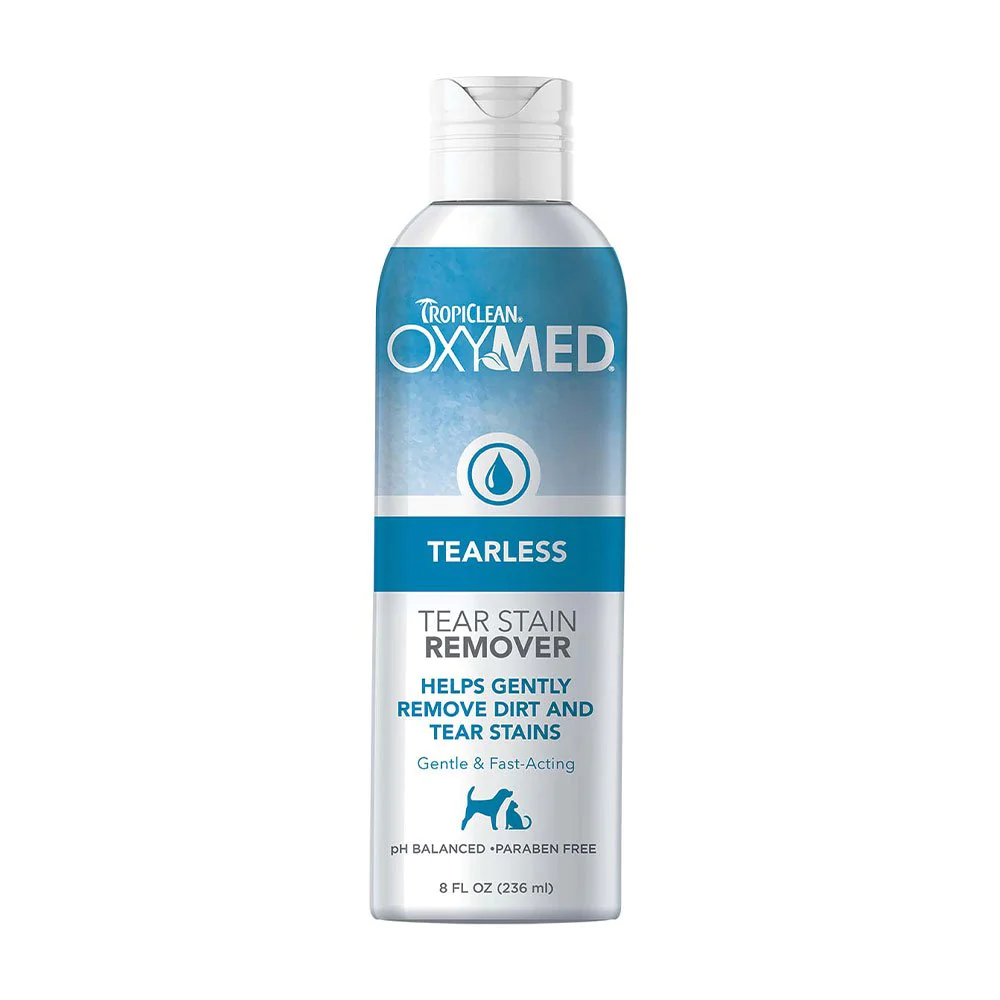 OxyMed Tear Stain Remover is a gentle cleanser that’s tough on tear stains and dirt. Formulated with moisturizing oatmeal, cleansing blueberries and enriched with vitamin E, OxyMed Tear Stain Remover is great for breeds with white coats, beards or wrinkles.