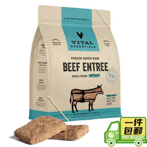 Vital Essentials 牧養牛肉主食凍乾大餡餅狗糧 30oz