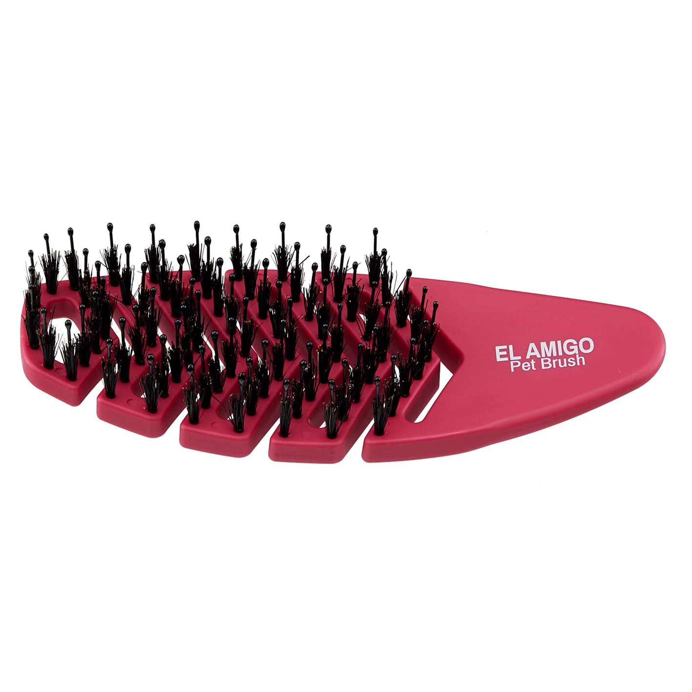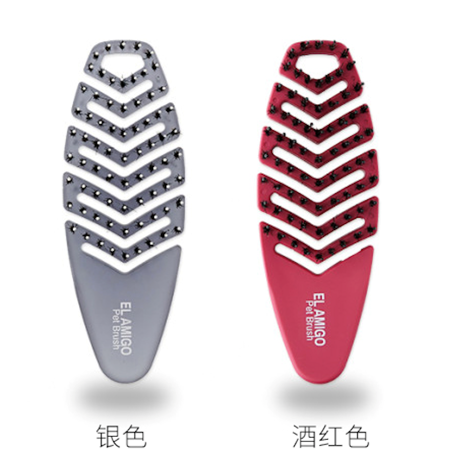 EL AMIGO 舒適高效手掌鬃毛寵物梳 酒紅色
