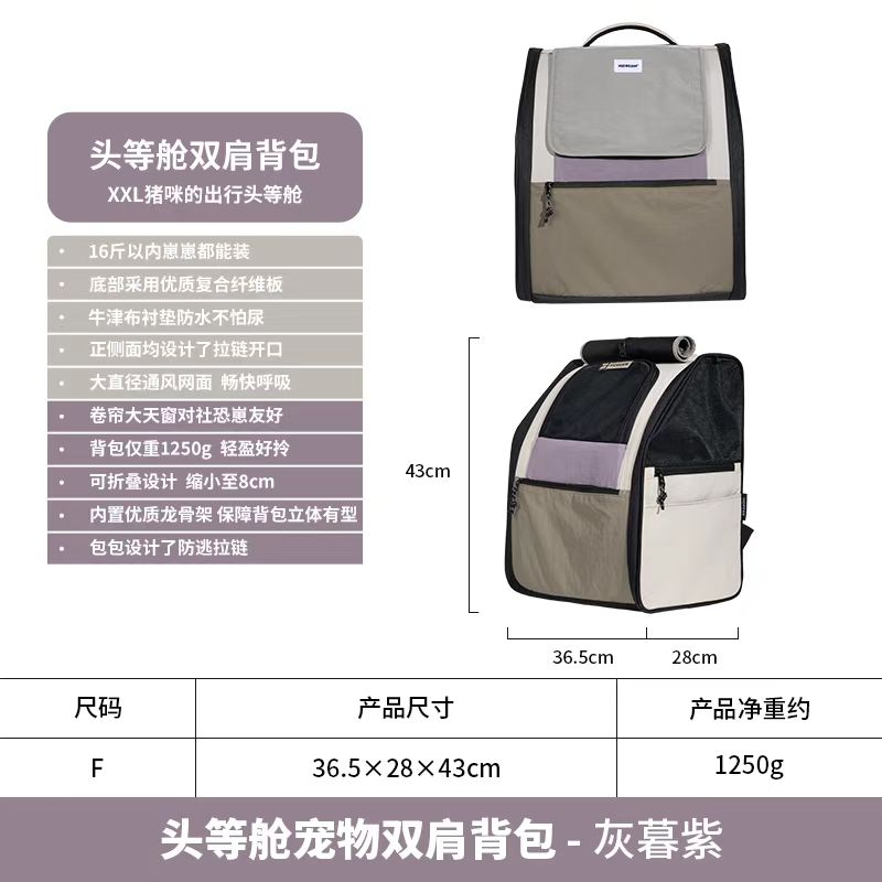 HiDream 便攜舒適頭等艙貓咪雙肩揹包 灰暮紫